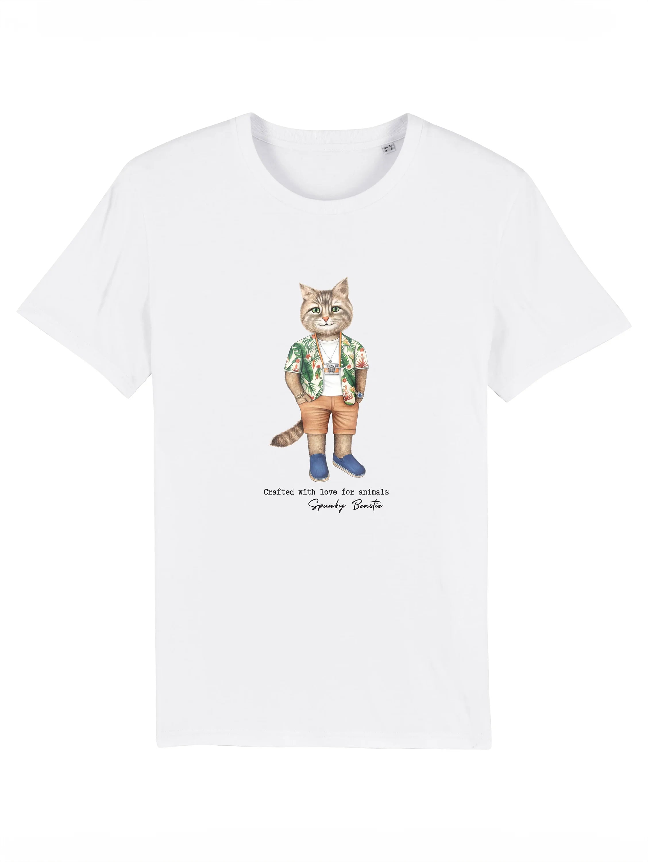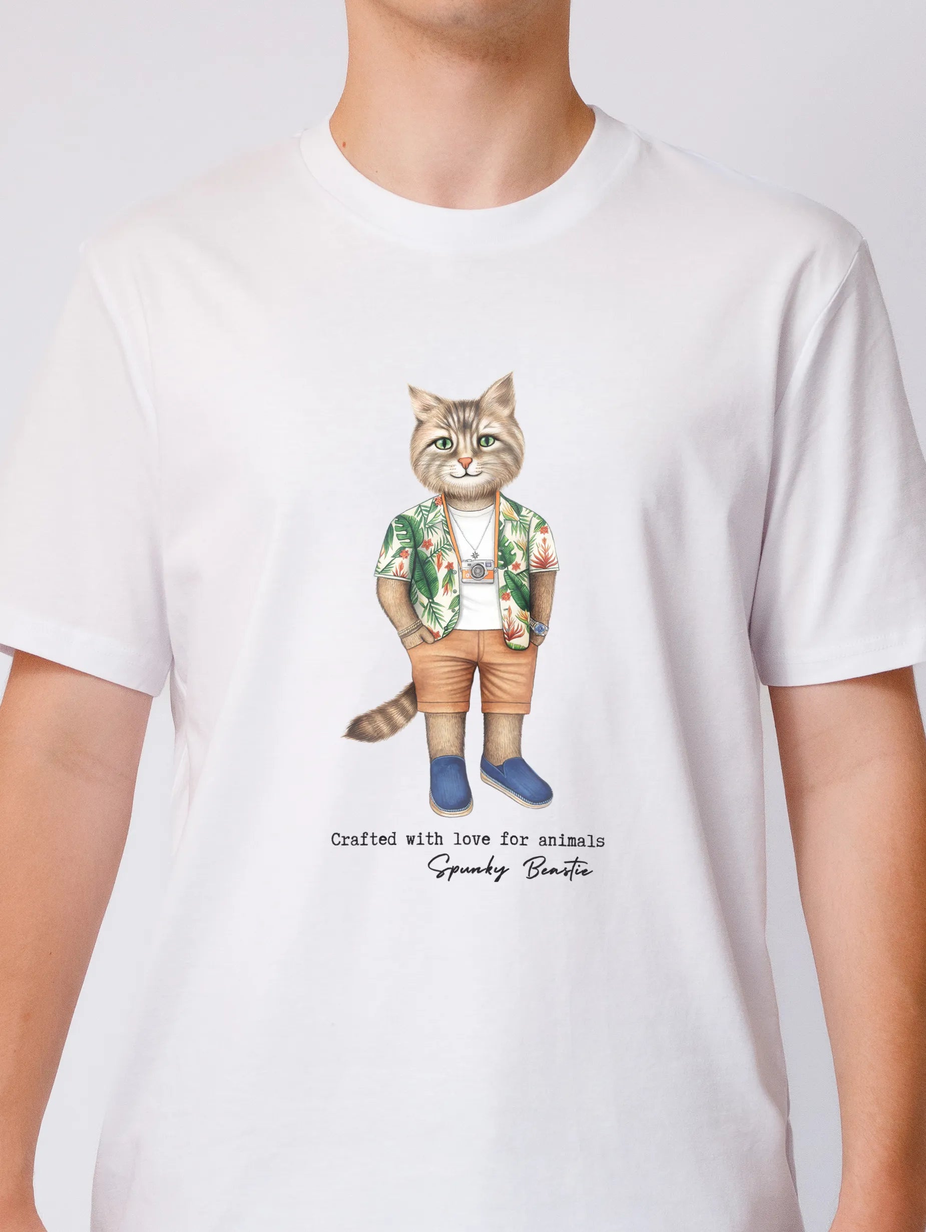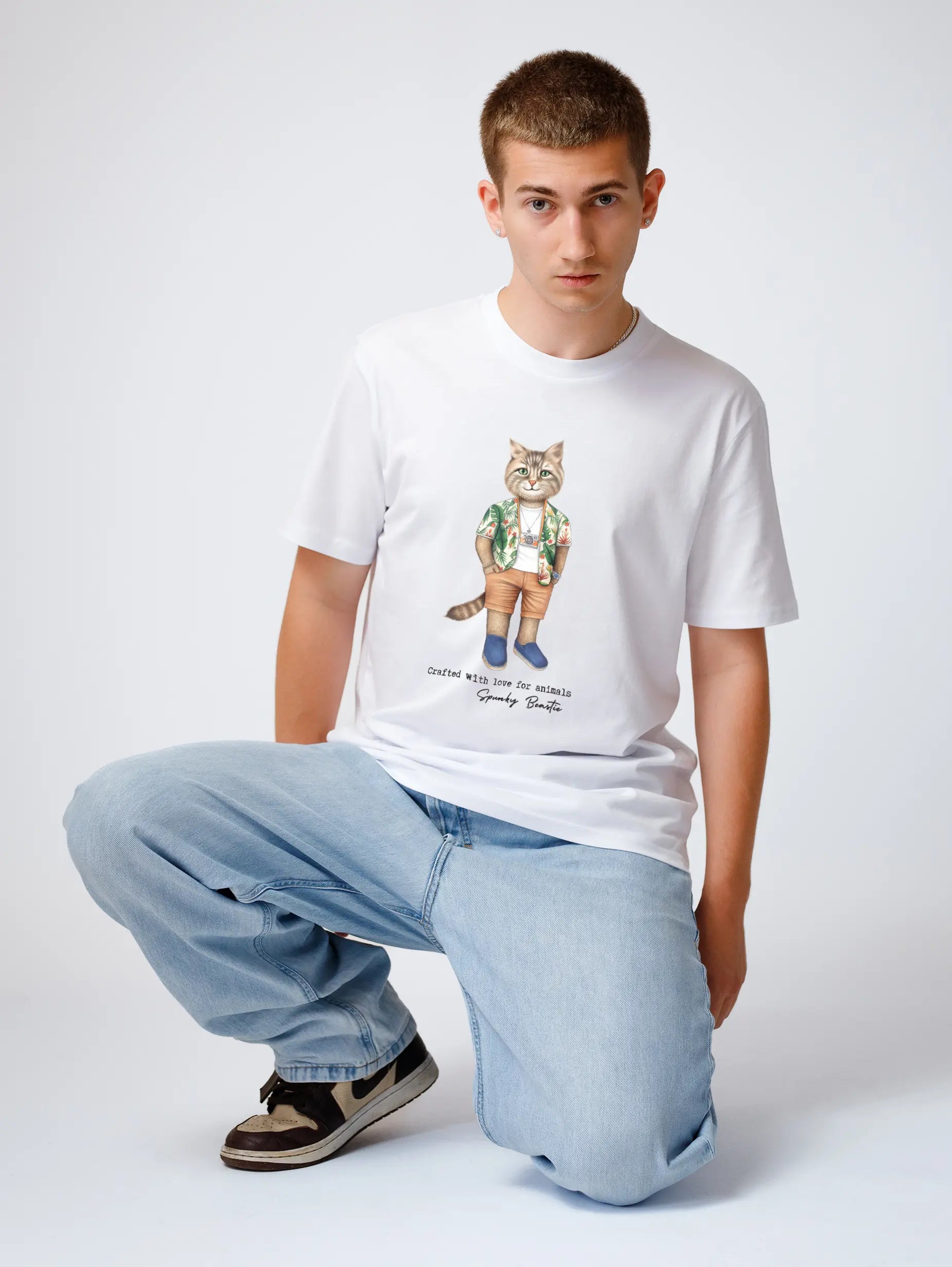 Męski t-shirt z najwyższej jakości bawełny organicznej, z modnym wzorem kultowego kota. Zaprojektowany w najdrobniejszych szczegółach, by podkreślić unikalny charakter Twojego stylu. Idealny zarówno do casualowych stylizacji, na spotkanie z przyjaciółmi jak i na imprezę.