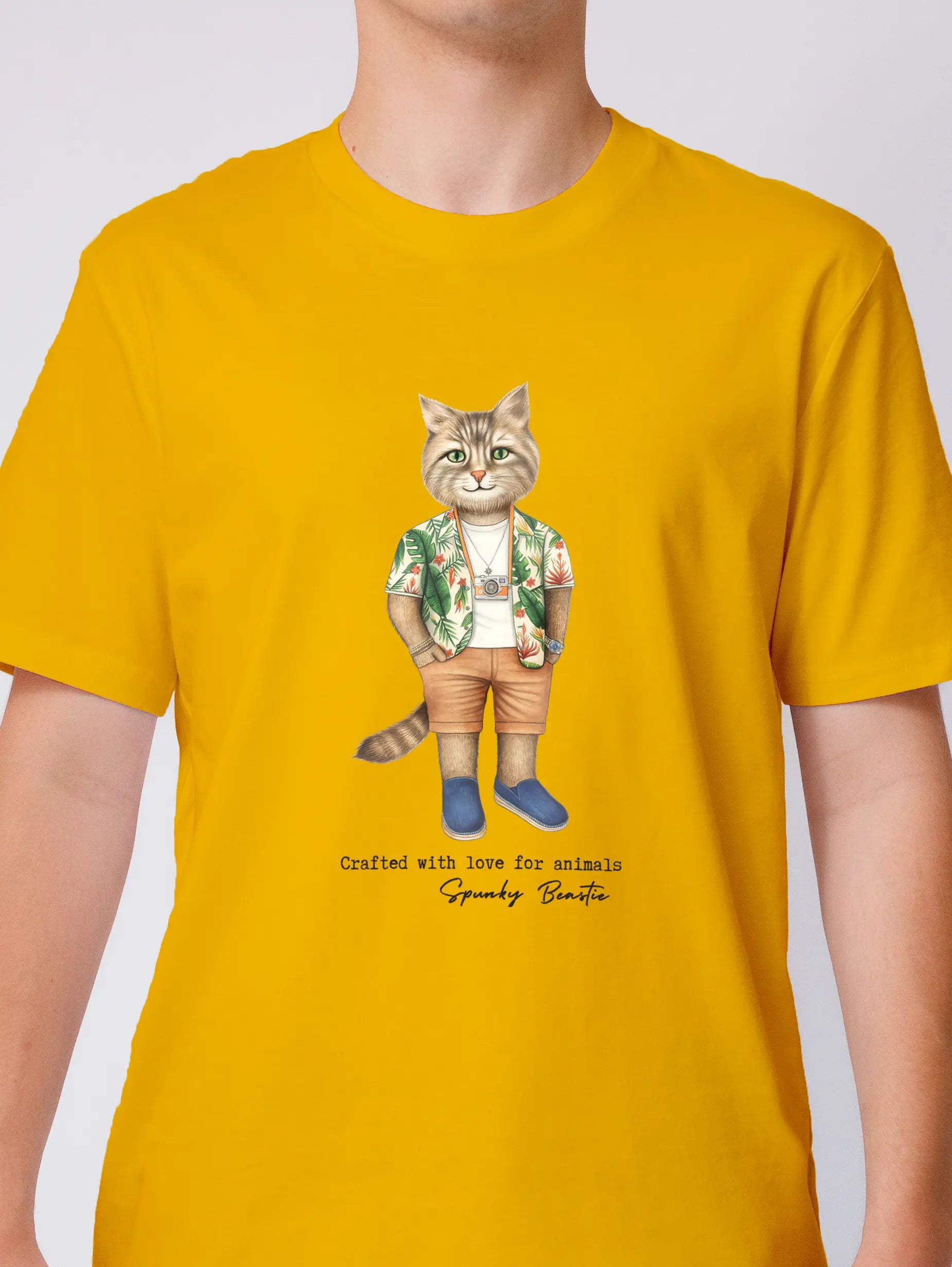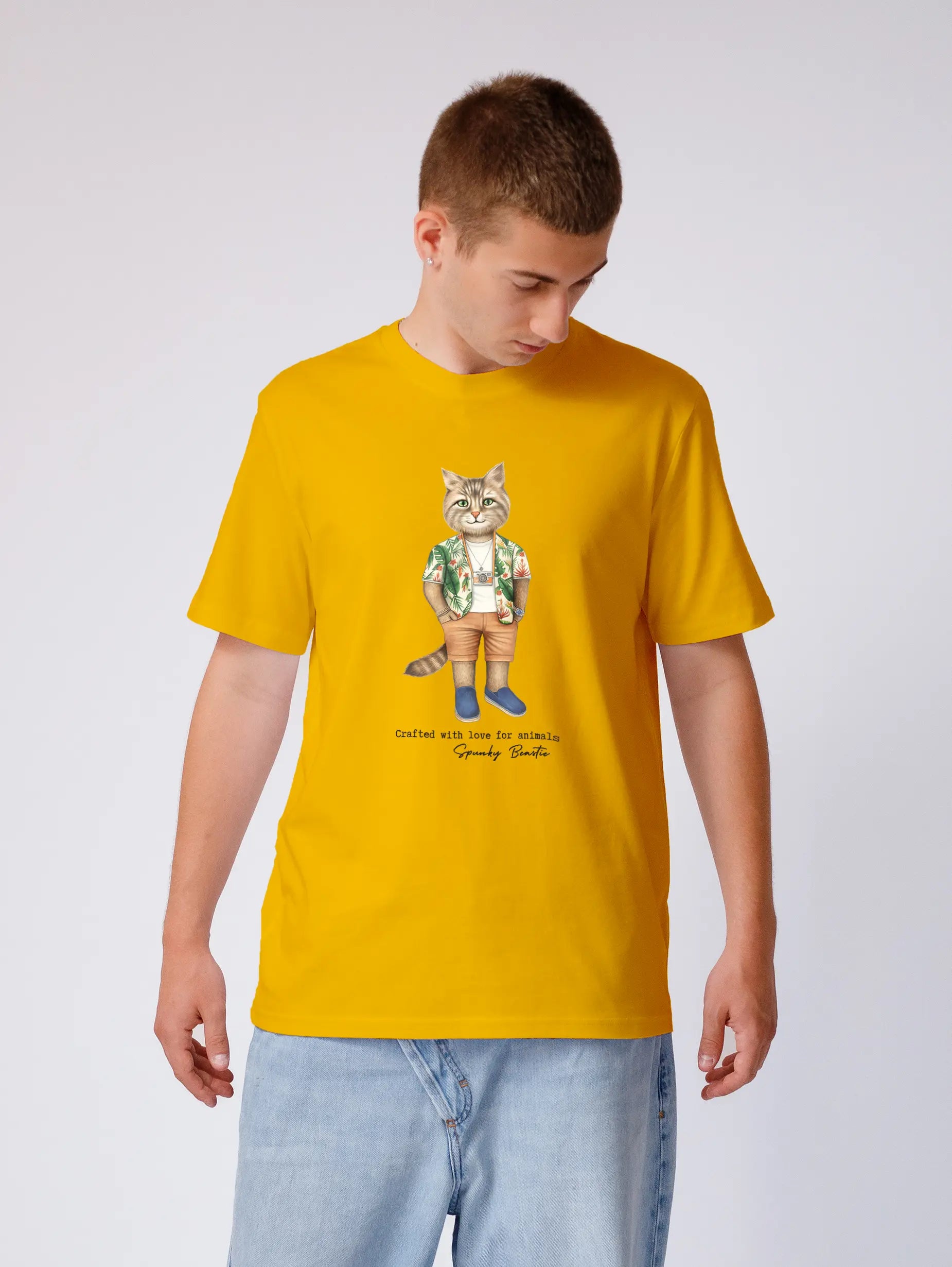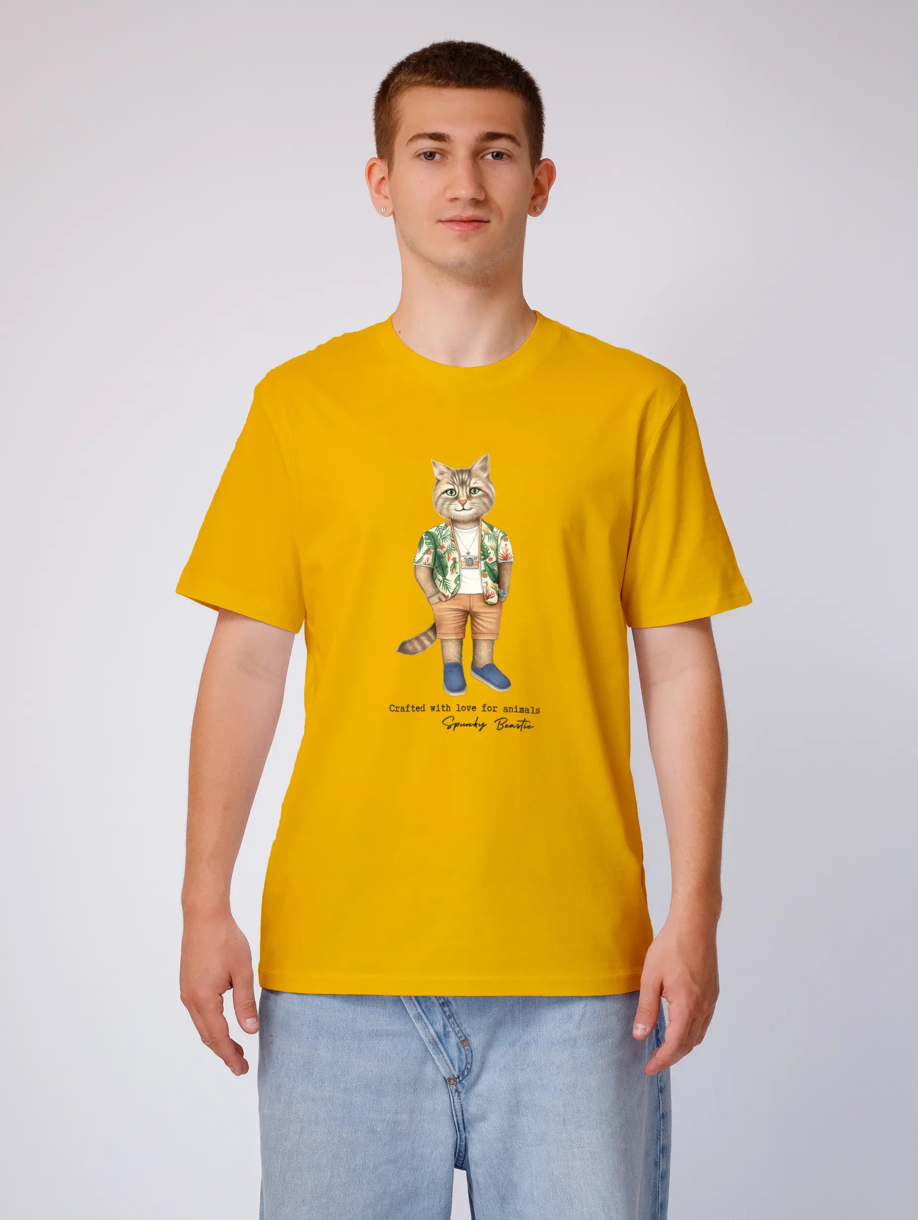 Męski t-shirt z najwyższej jakości bawełny organicznej, z modnym wzorem kultowego kota. Zaprojektowany w najdrobniejszych szczegółach, by podkreślić unikalny charakter Twojego stylu. Idealny zarówno do casualowych stylizacji, na spotkanie z przyjaciółmi jak i na imprezę.