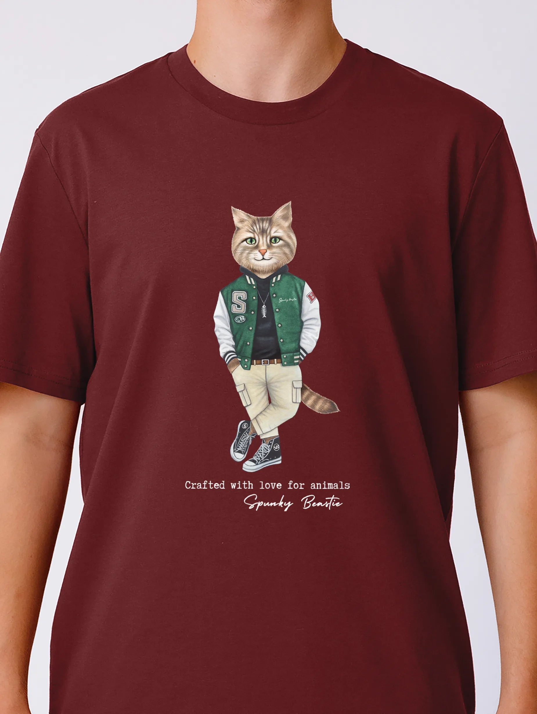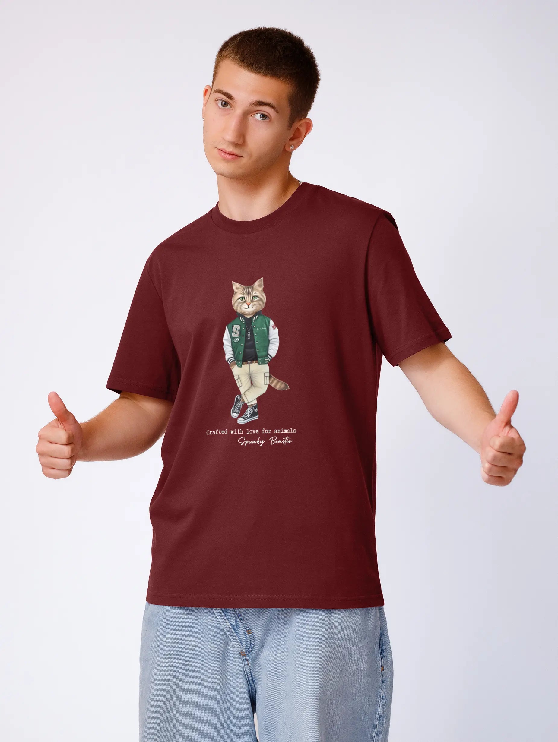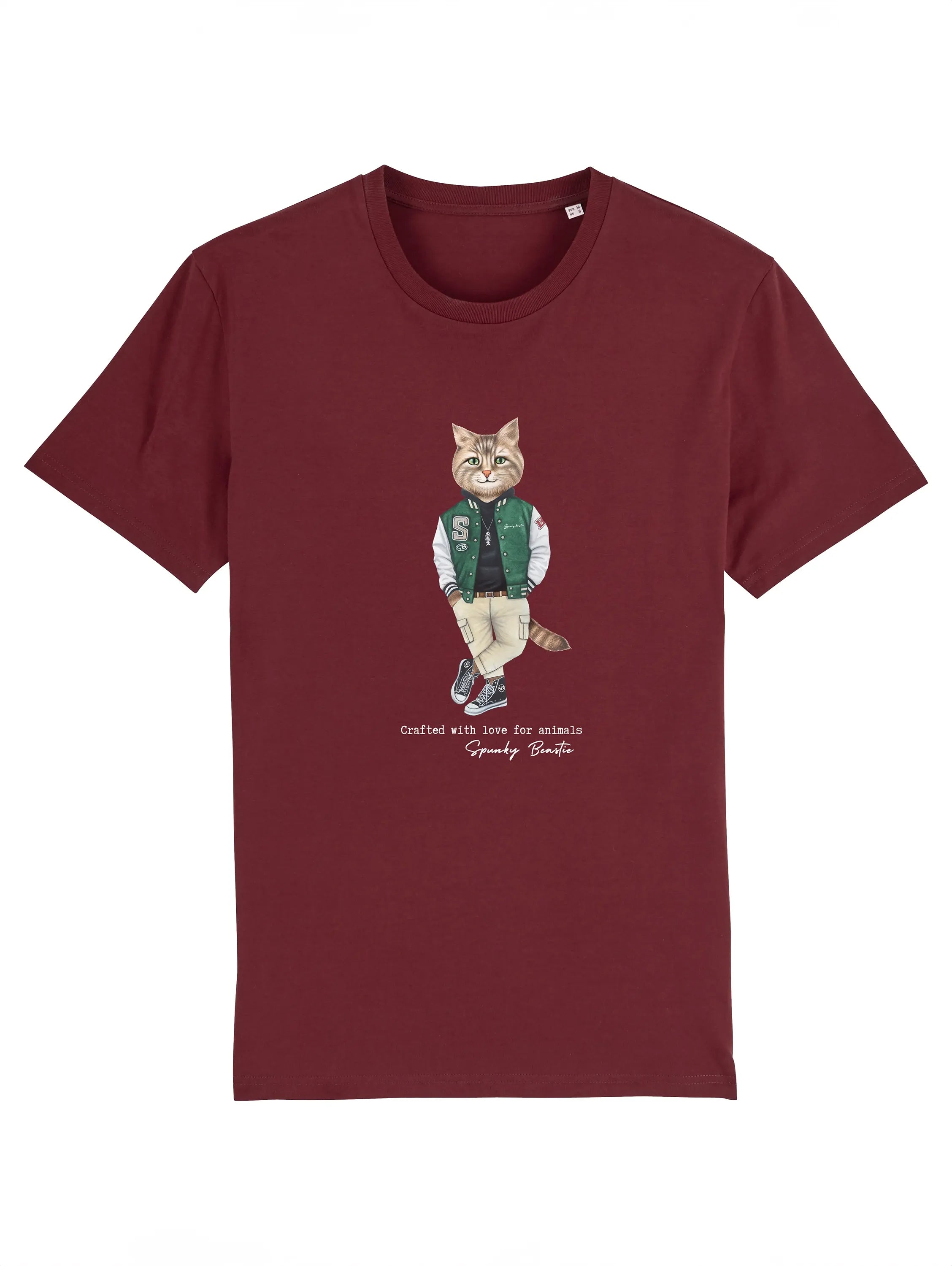 Men's t-shirt made of the highest quality organic cotton, with a fashionable design of an iconic Spunky Cat. Designed in the smallest details to emphasize an unique character of your style. Ideal for casual style, for meeting with friends and for the party.
