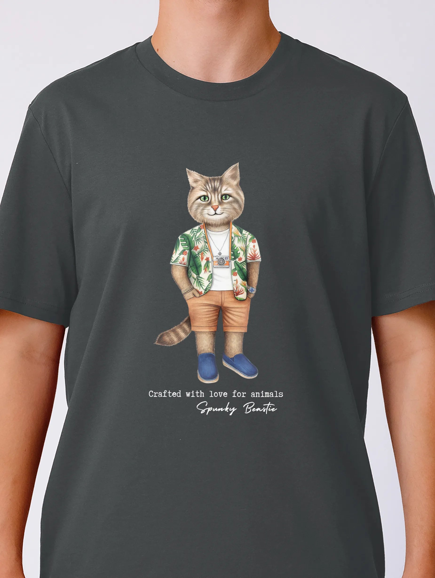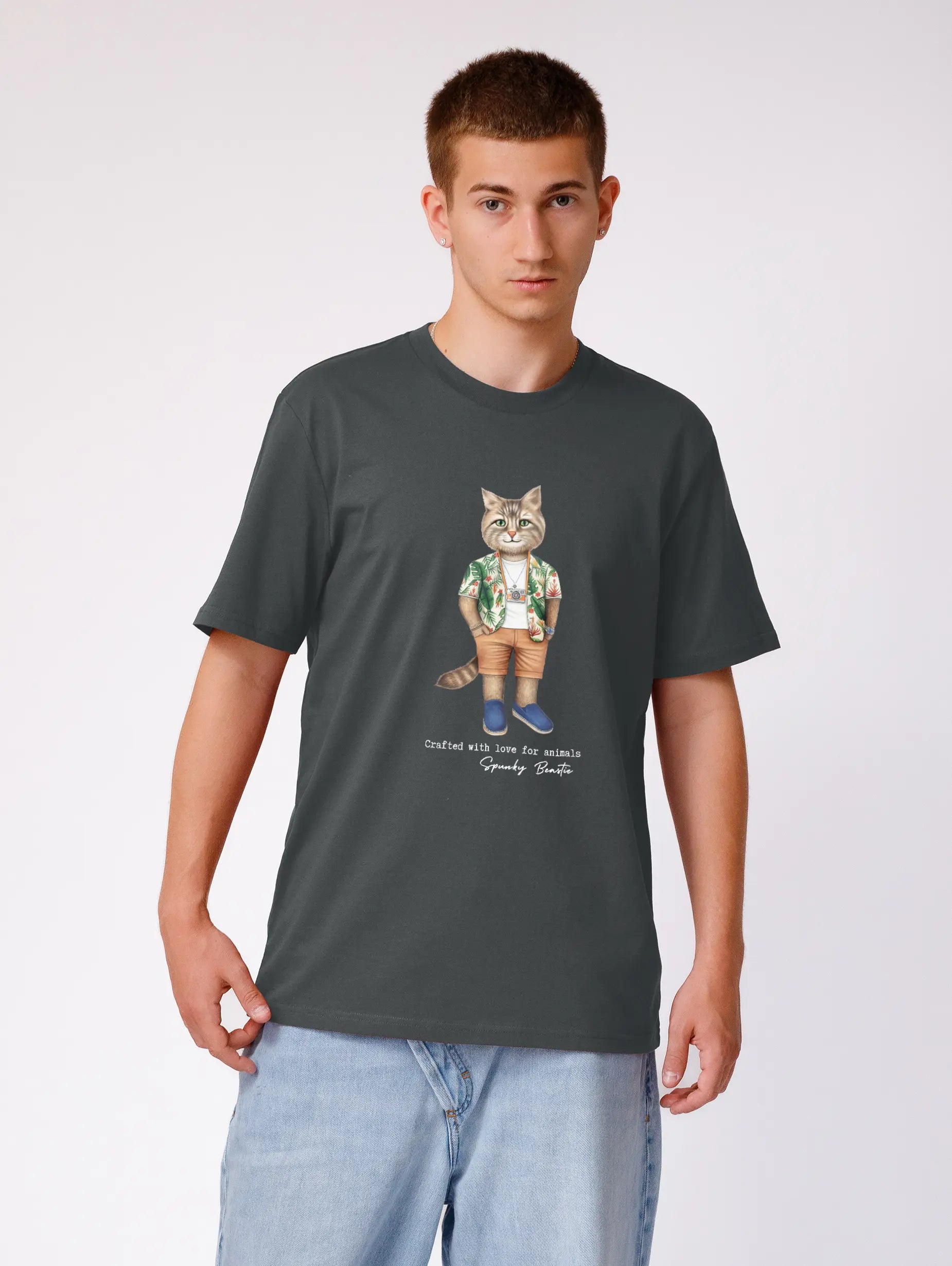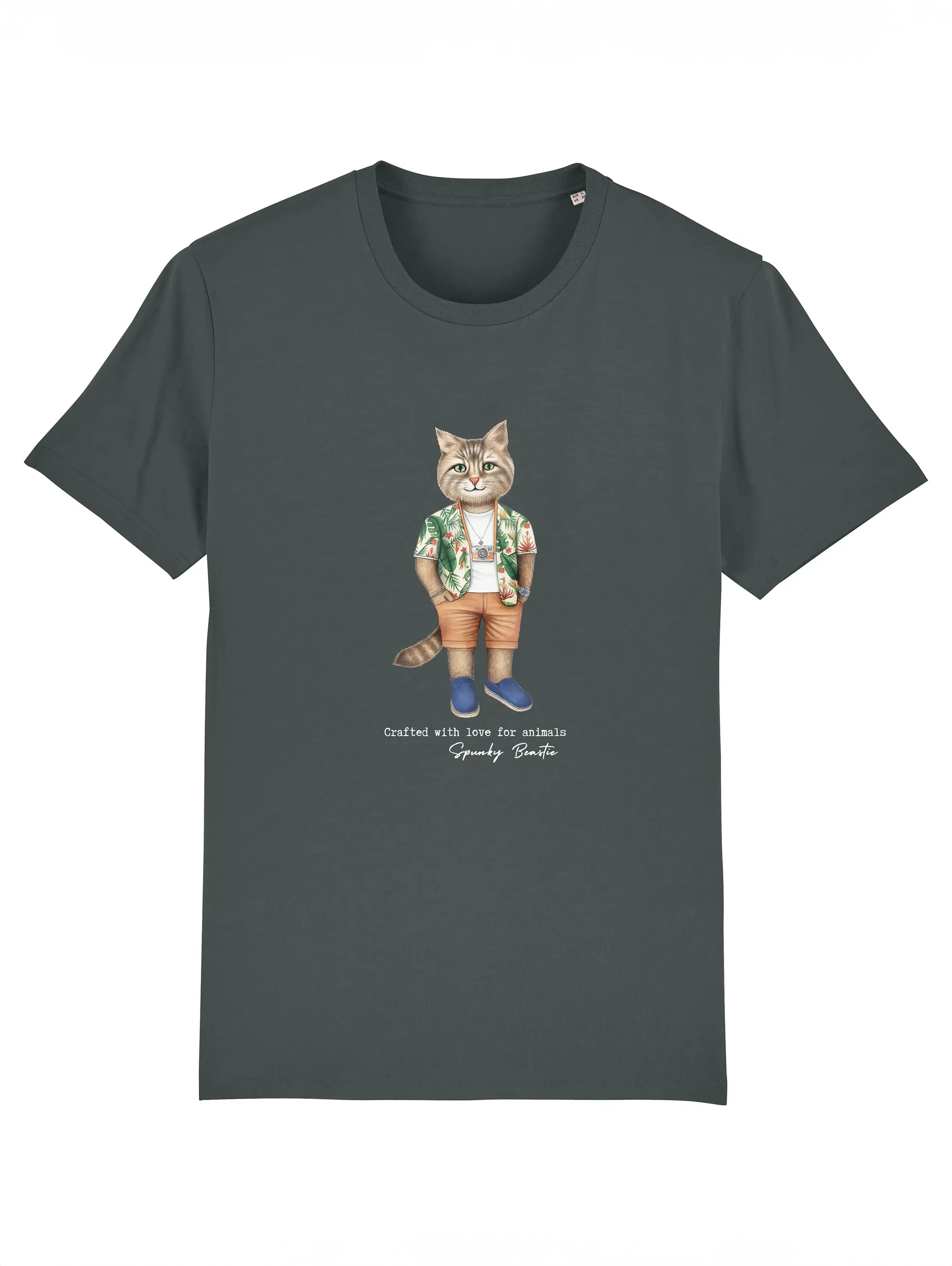 Men's t-shirt made of the highest quality organic cotton, with a fashionable design of an iconic Spunky Cat. Designed in the smallest details to emphasize an unique character of your style. Ideal for casual style, for meeting with friends and for the party.