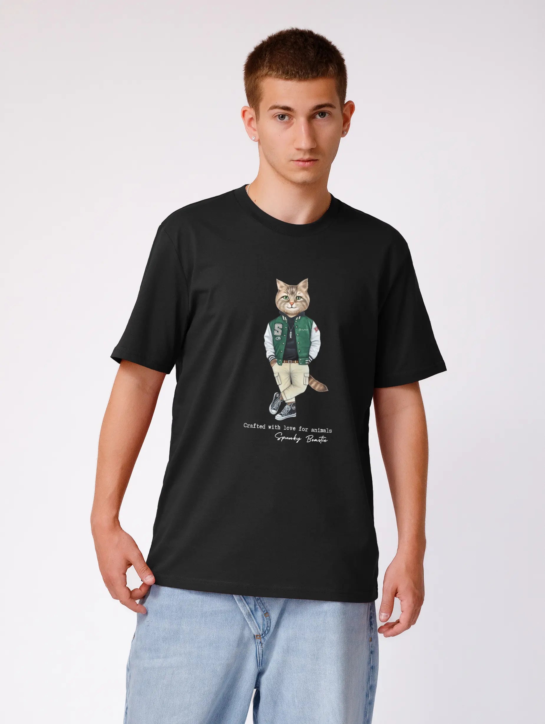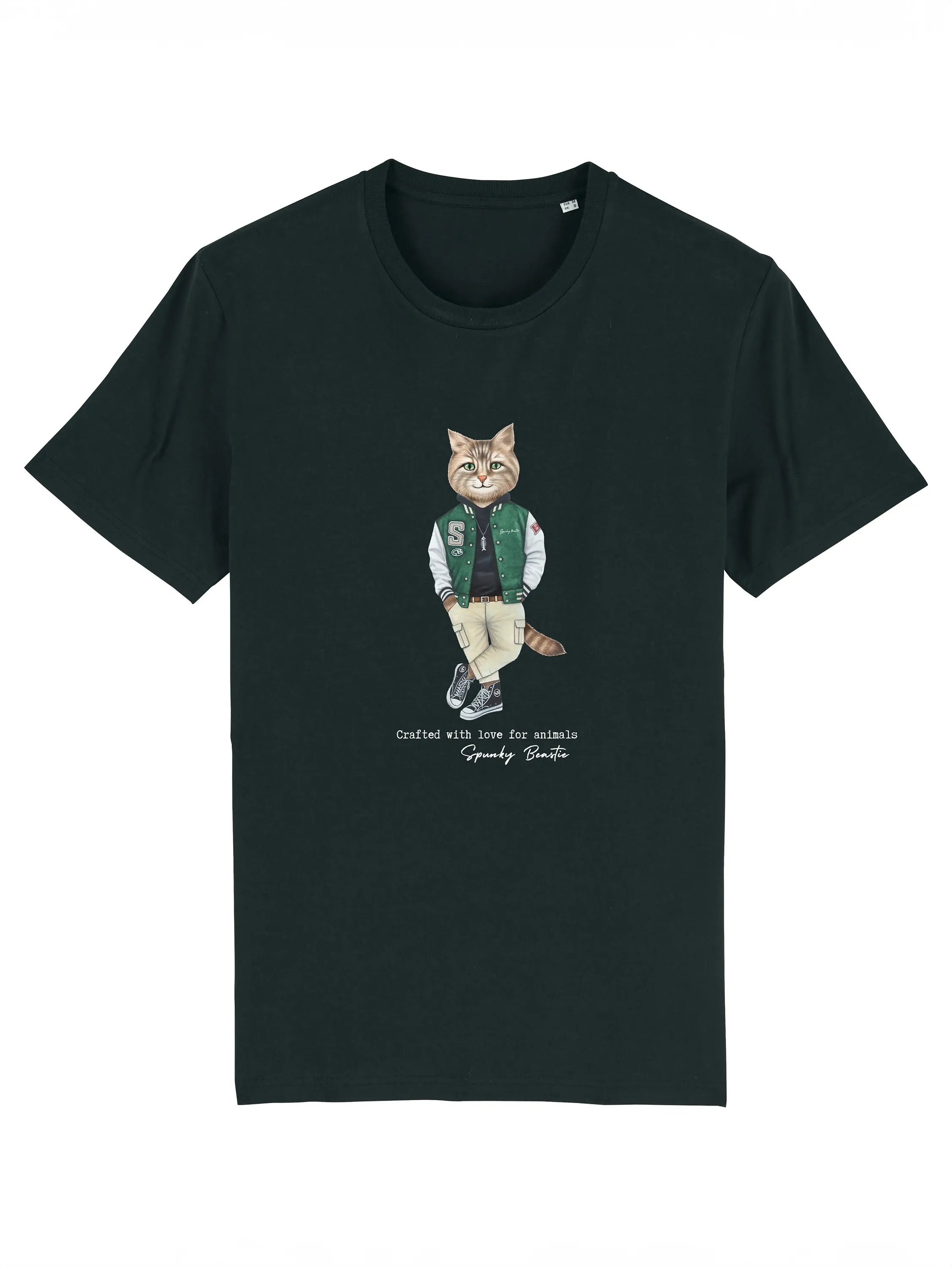 Men's t-shirt made of the highest quality organic cotton, with a fashionable design of an iconic Spunky Cat. Designed in the smallest details to emphasize an unique character of your style. Ideal for casual style, for meeting with friends and for the party.