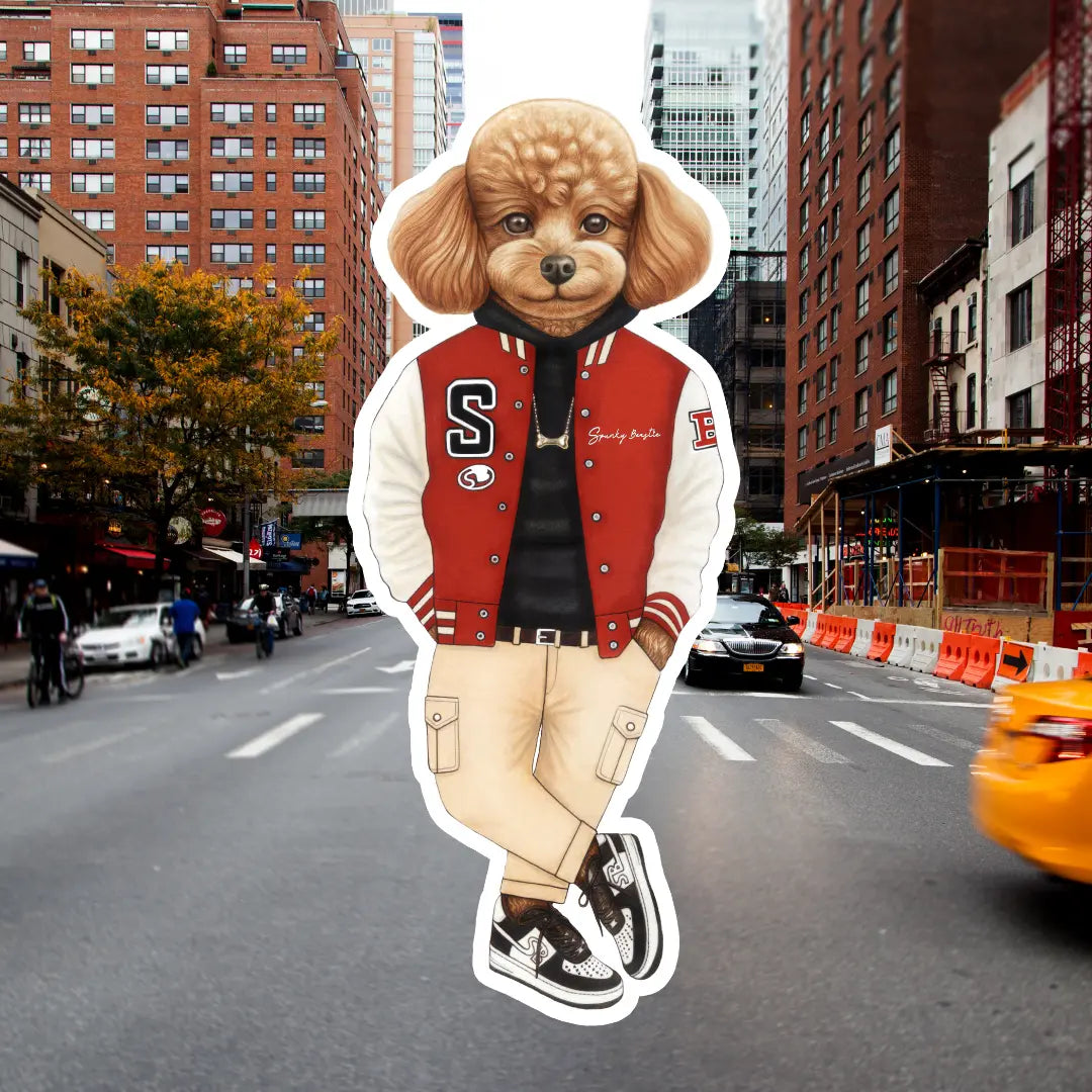 Spunky Dog z kolekcji Varsity Jacket to prawdziwy trendsetter! Czerwona kurtka varsity z dużymi literami na przodzie to klasyka, która doskonale oddaje jego sportowego ducha i pewność siebie. Czarna bluza z kapturem świetnie podkreśla jego buntowniczy charakter i dodaje mu zadziorności. Spunky Dog nosi naszyjnik z psią kostką, który wprowadza nutę szaleństwa i beztroskiego uroku. To właśnie te detale sprawiają, że jest on kwintesencją bycia trendy. Gdziekolwiek się pojawi, przyciąga uwagę i udowadnia, że moda to przede wszystkim radość i wolność wyrażania siebie.