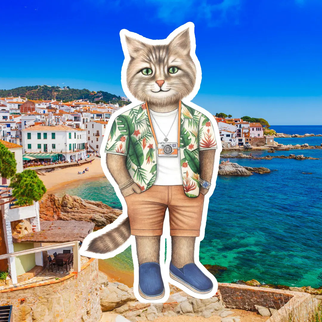 Spunky Cat z serii Tropic Chillout to prawdziwa personifikacja egzotycznych akcentów. W rozpiętej koszuli w tropikalny wzór oraz w białym t-shirt’cie i krótkich pomarańczowych spodenkach wygląda jak prawdziwy król nadmorskich kurortów. Ale to nie wszystko - na szyi ma zawieszony aparat, gotowy do złapania każdej chwili z tych magicznych miejsc. Jego obecność jest jak powiew świeżego powietrza w upalny dzień - po prostu niezastąpiona. To właśnie dlatego wszyscy uwielbiają spędzać z nim czas, marząc już o kolejnej przygodzie na egzotycznej plaży.