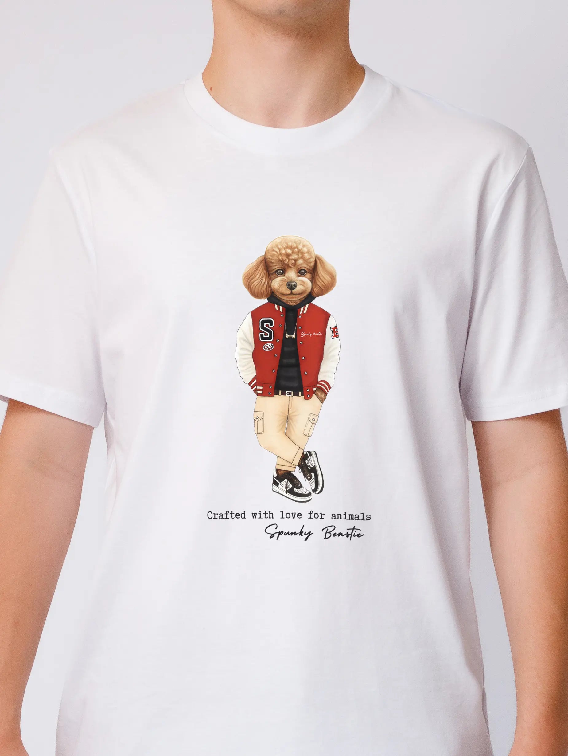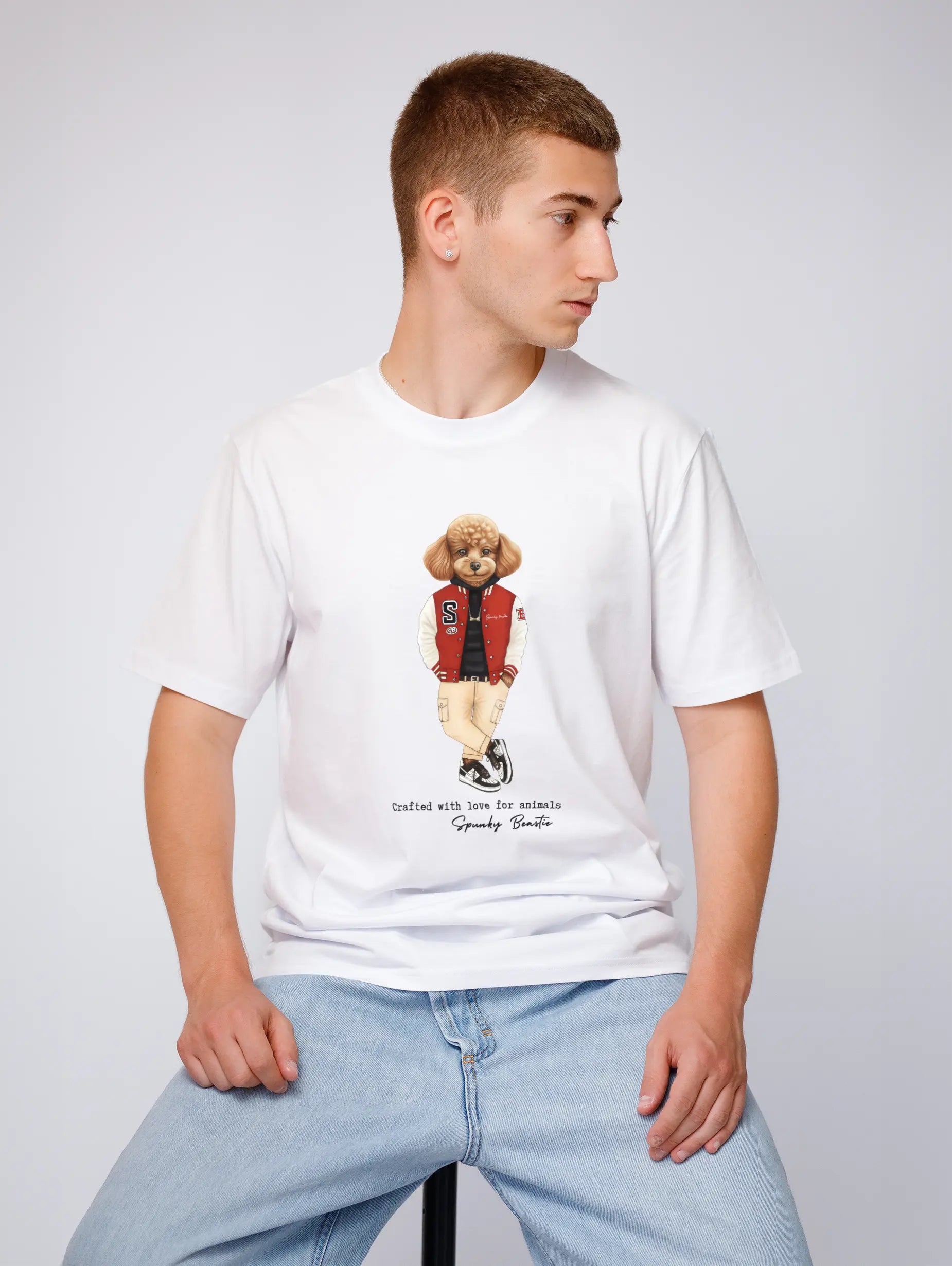Męski t-shirt z najwyższej jakości bawełny organicznej, z modnym wzorem kultowego psa. Zaprojektowany w najdrobniejszych szczegółach, by podkreślić unikalny charakter Twojego stylu. Idealny zarówno do casualowych stylizacji, na spotkanie z przyjaciółmi jak i na imprezę.